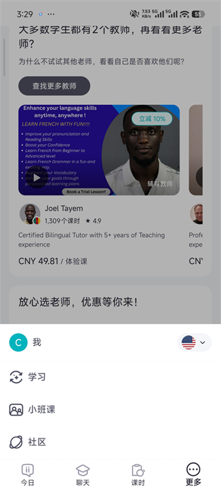 上一节课付一节课,低至1美元起,告别长期捆绑消费,真正拥有选择学习方式的自由。你可以跟着一个老师学习,也可以同时拥有数个不同专长的老师,根据自己的需求和节奏,提升外语水平