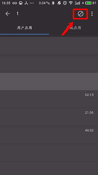 17、接着,再点击右上角的“禁止”按钮,即可使得黑阈可以在你不用该应用时,智能切断该应用的后台运行;