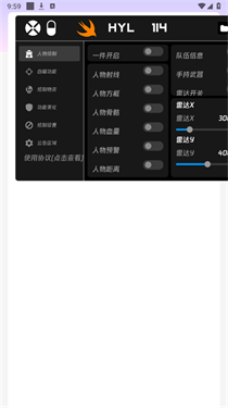 2、启动软件后,在功能界面勾选所需模块(如自瞄/无后坐力/透视等)