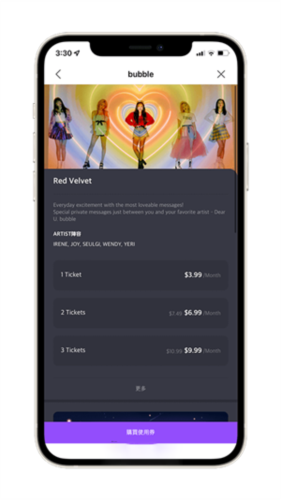 怎么购买Lysn bubble 使用券,开启和艺人的一对一聊天室。