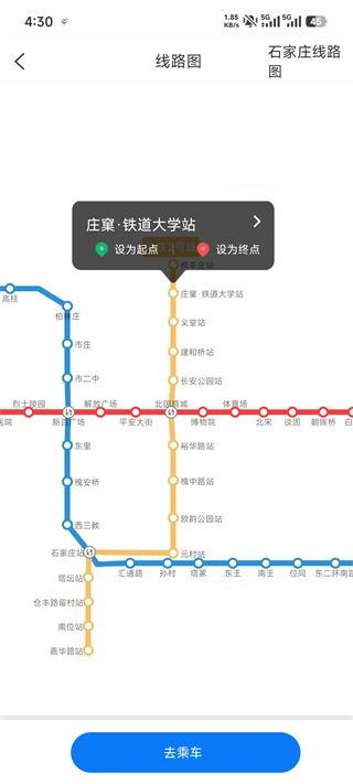 1、打开石家庄地铁乘车App,点击【地铁线路】
