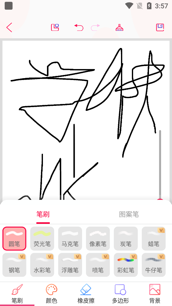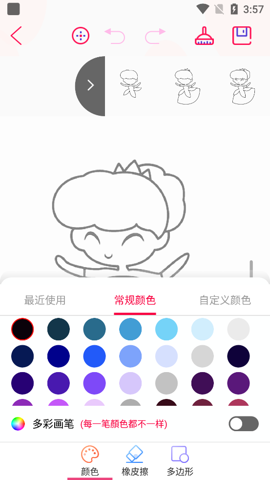 支持色板取色,换背景(相册、纯色、模板),实时自动保存,一键清除画布,无限撤销与重做,便于修改和创作。