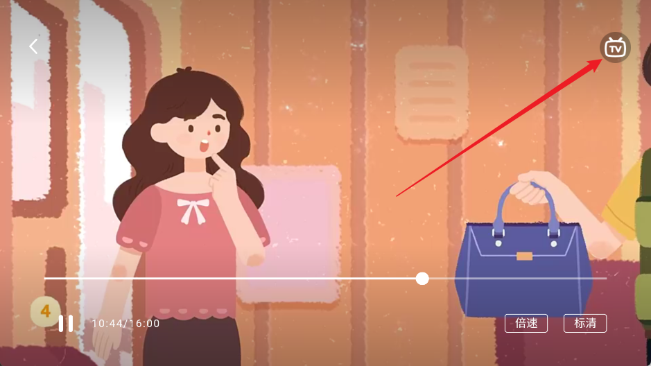 4、播放界面右上角点击电视 投屏 按钮(TV图标)。