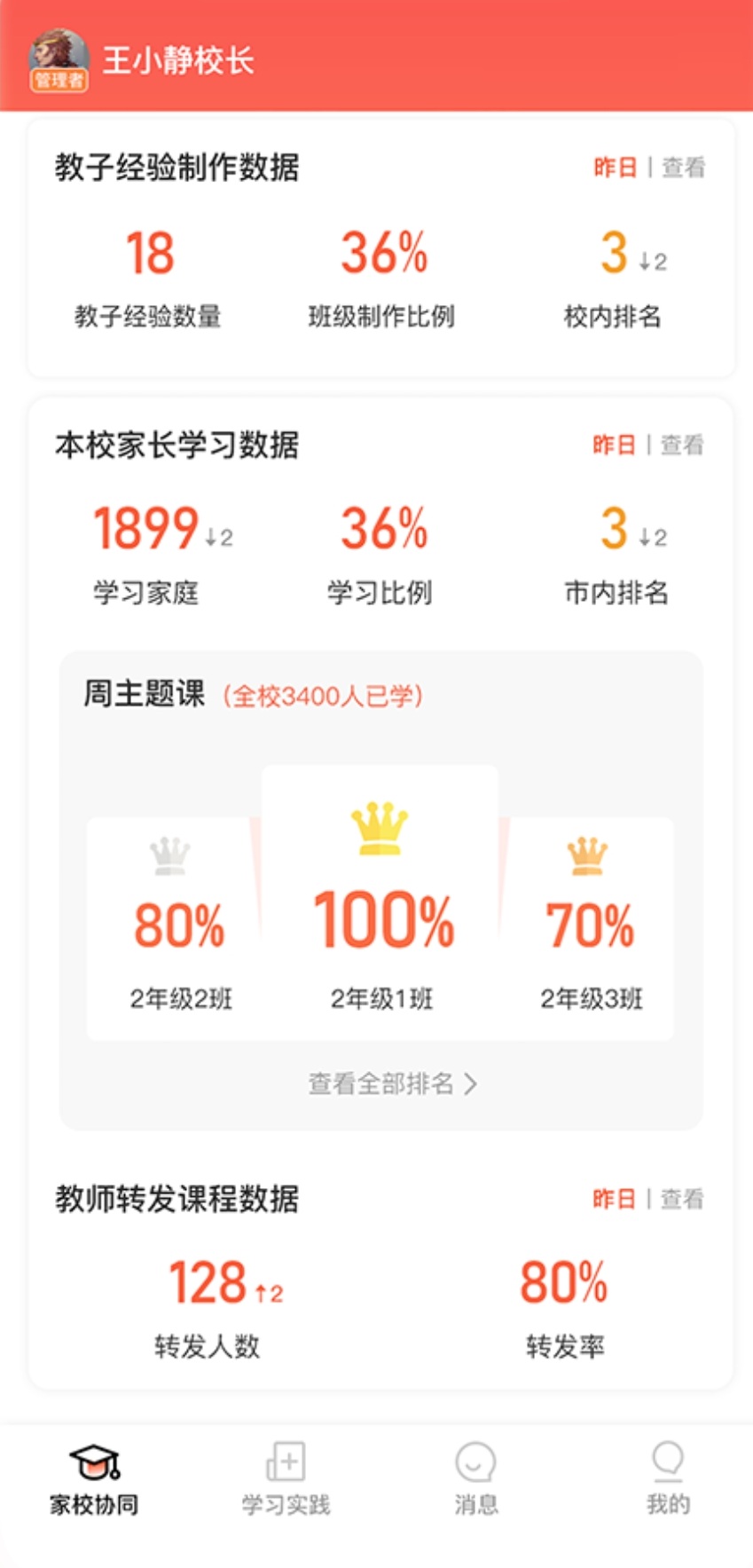 1、搭建在线家长学校,以孩子班级为基础建立家长学习圈,精选了诸多优质课程,并通过家委会监督协助家校协同,教师及校长可随时发布重要信息让家长第一时间了解学校信息。