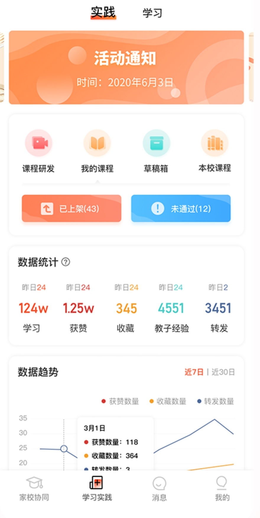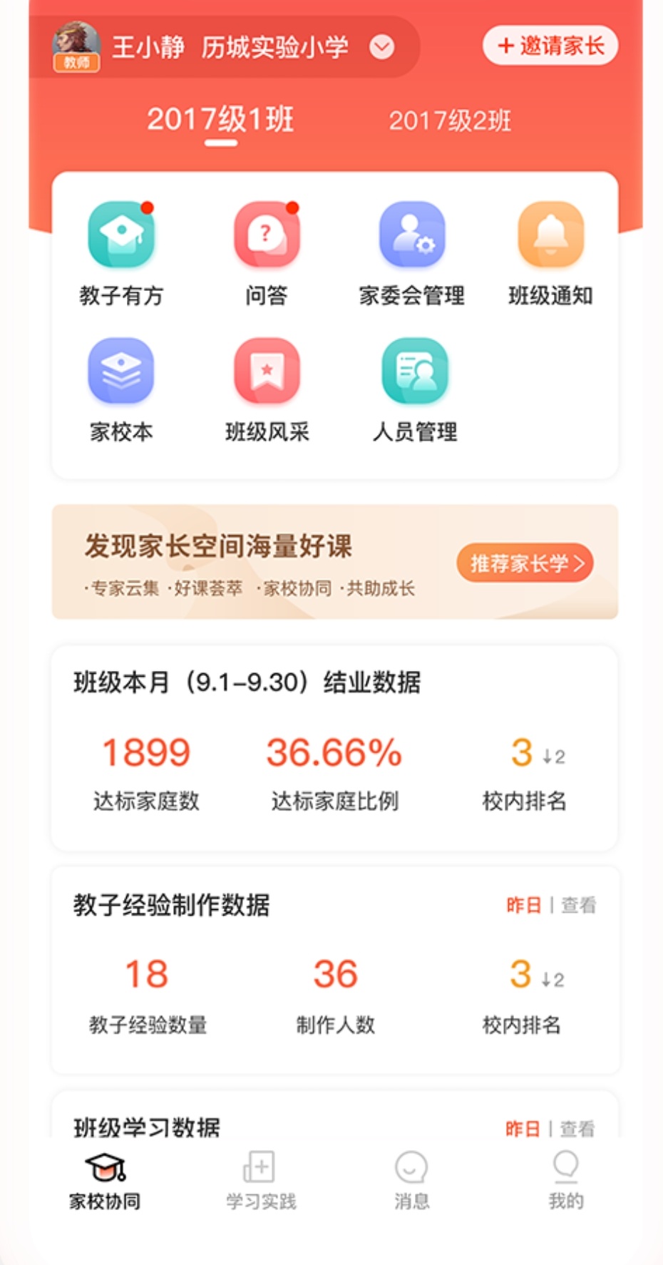 2、满足家长学习需求,提供丰富的家庭教育课程资源,为家长提供系统学习课程、优质的校研课课程与名师课程。