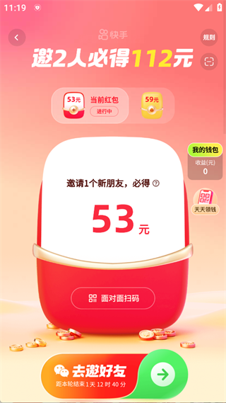 5、邀请好友领现金,成功邀请好友注册并使用快手极速版旧版2023后,可获得现金奖励,邀请越多收益越高。