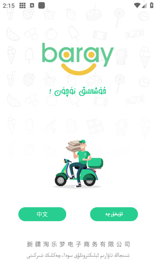 1、安装并打开baray外卖app之后,会让你选择简体中文或者维吾尔语,选好后进图app也可以自由切换语言。