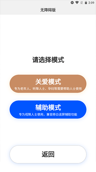 2、再点击无障碍版切换,进入页面后根据需求选择关爱或辅助模式即可。
