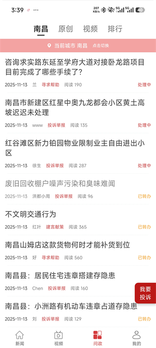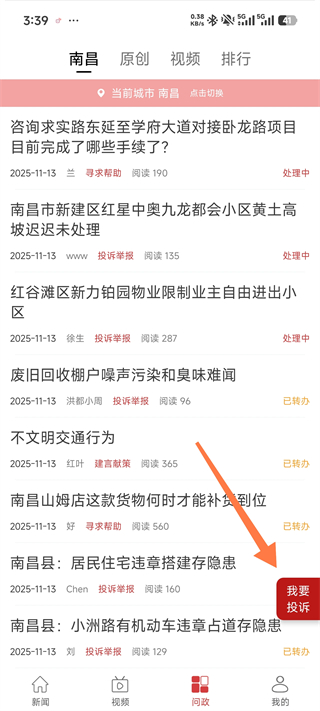 4、投诉提交成功后,系统将自动转交至相关部门进行处理,用户可在该板块查看其他人的情况。