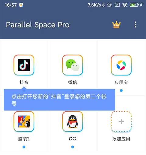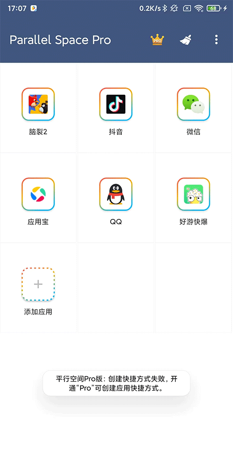 注意:Parallel Space专业版需要先开通Pro版才能创建快捷方式进行双开。