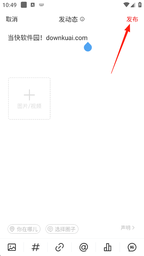 2、在发布页输入您想要投稿的内容,完成后点击右上角的发布;