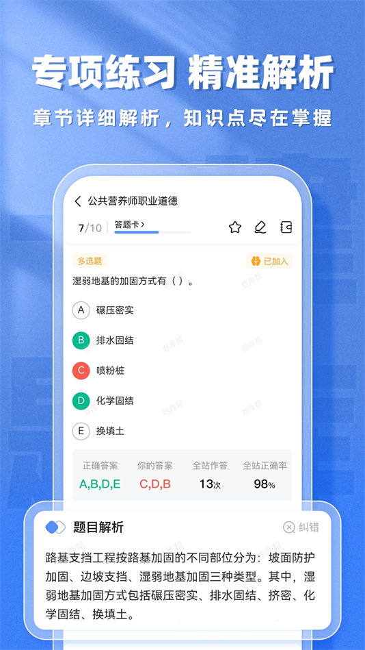 支持用户有效实现错题巩固,能够让你反复练习自己的错题,清除备考路上的障碍。
