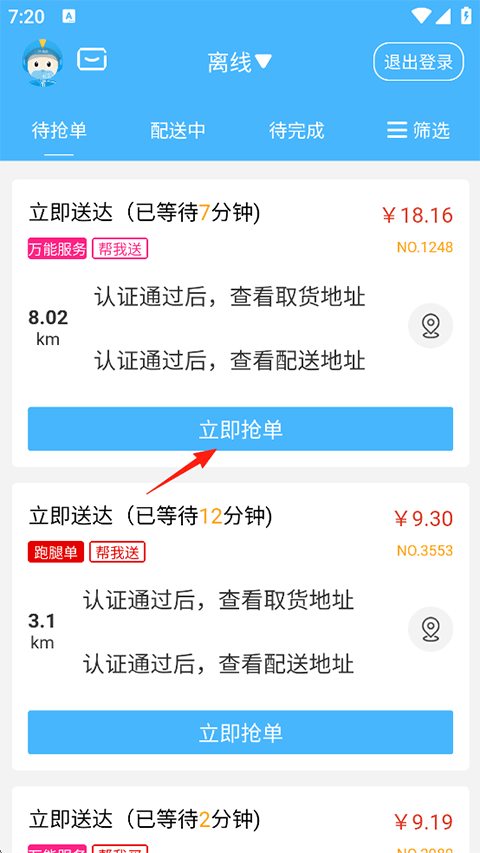 1、打开登录抖送骑士版,在首页点击立即抢单;
