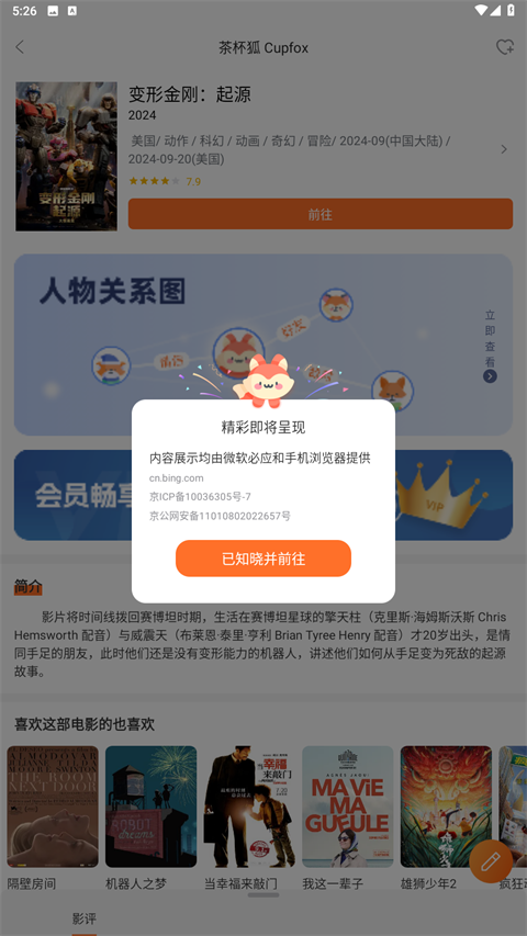 4、点击前往,软件将跳转至外部资源站播放(如B站),软件内不直接提供播放服务。