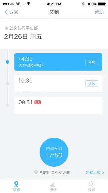 内勤签到员工省心,外勤签到老板放心。连接HR系统,考勤管理更紧密。