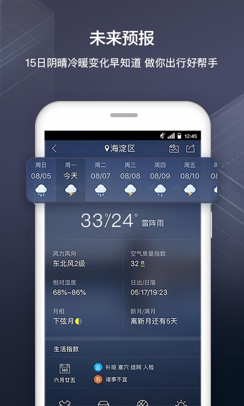 【天气生活指数】晴天雨天综合查看各项指标,根据天气情况轻松安排室内外活动。