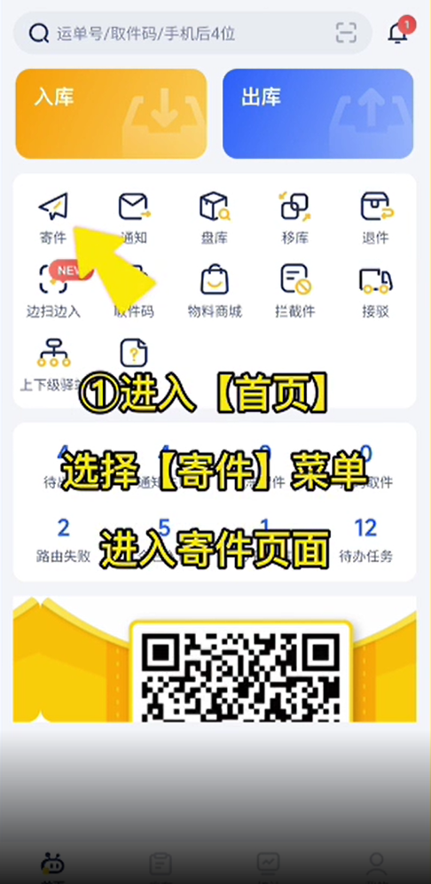 寄件需要先完成【驿站经营认证】和【绑定便利店编码】;