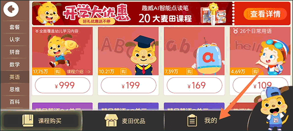 1、进入麦田英语app,点击右上角的商城进入商城界面