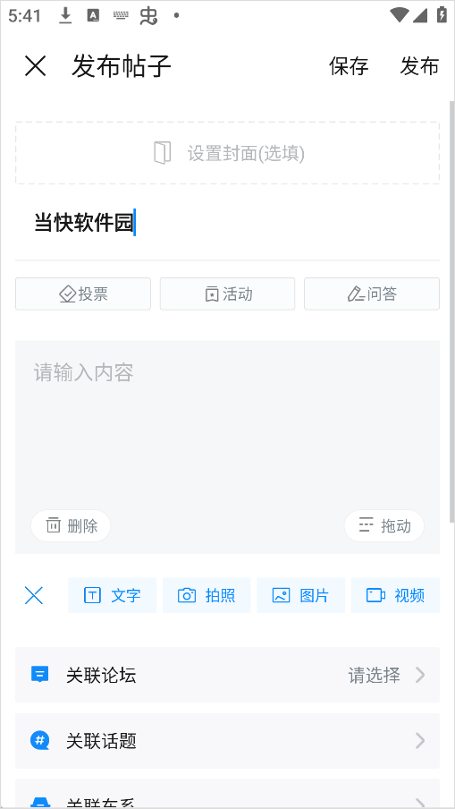 2、在社区页面中找到“发布”按钮,进入编辑界面。