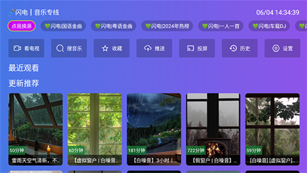 1、在本站内下载安装,并打开软件,可看到“闪电国语金曲”“闪电粤语金曲”“闪电2024年热榜”等分类。点击任意一个音乐版块,浏览该分类下的音乐内容点击播放。