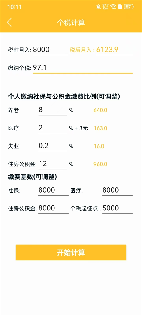 5、五险一金缴纳金额清晰展示,自动核算税后工资实得金额。