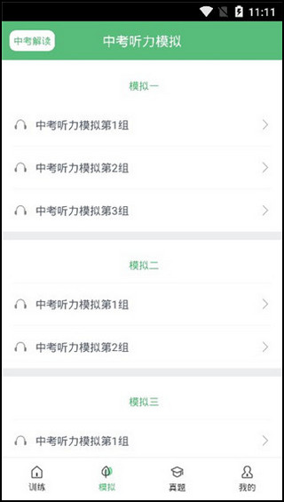 3、下一个页面,中考听力模拟,这个在备考时期非常有用,让孩子赶快用起来吧,注意劳逸结合哦~