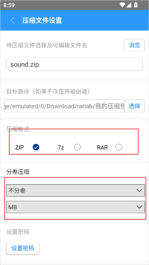 6、支持创建 7z 多分卷文档,并支持解压 7z 和 rar 多分卷压缩包;