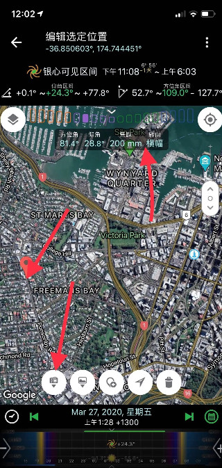 3、应用设计直观易用,您可以将其视为一台虚拟相机。在家中即可将“相机”放置于地球任意地点,调整至过去或未来的某一时刻,查看该时刻所有相关的天文与拍摄信息。